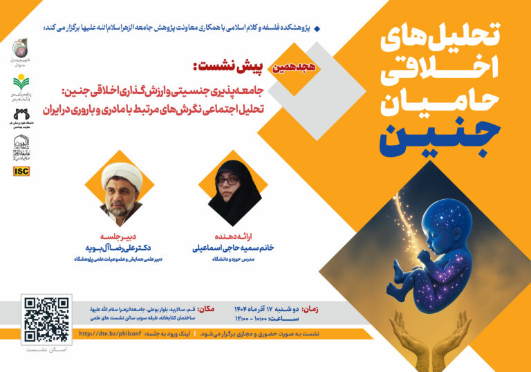 در تاریخ ۱۷ آذرماه ۱۴۰۴ هیجدهمین پیش نشست با عنوان جامعه پذیری جنین و ارزگذاری اخلاقی جنین: تحلیل اجتماعی نگرشهای مرتبط با جنین و باروری